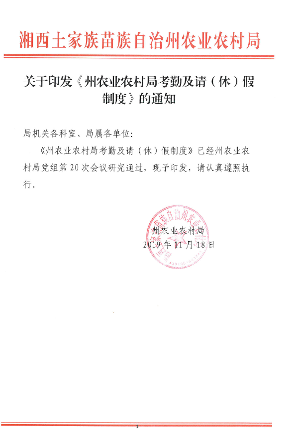 关于印发《州365bet亚洲体育_365体育平台怎么不取缔_365沙巴体育注册农村局考勤及请(休)假制度》的通知