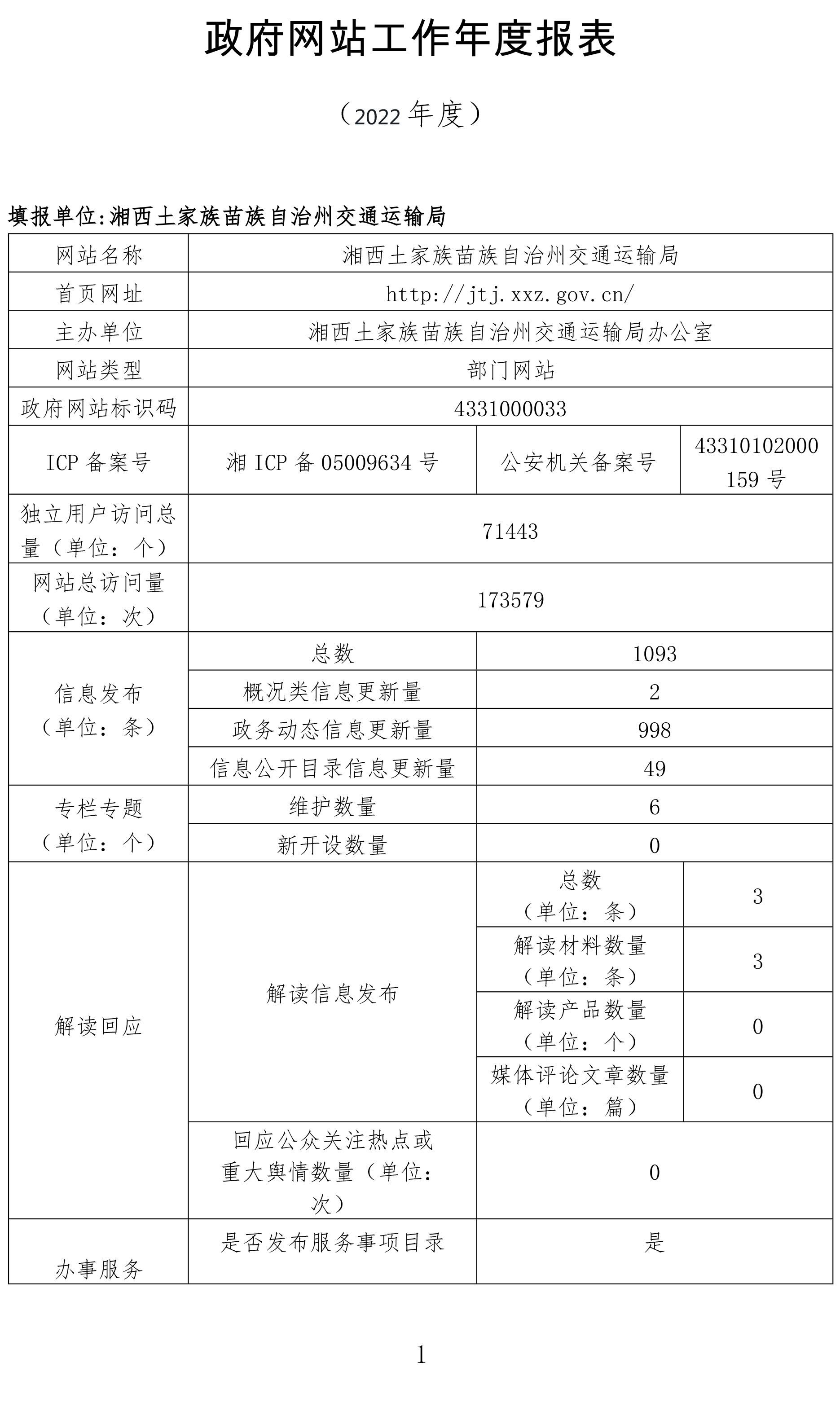 湘西州交通运输局网站2022年工作年度报表