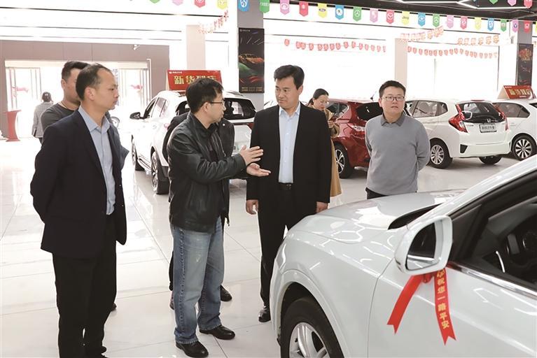 高新区党工委书记向恒林在武陵汽车城开展“三问三促”活动。