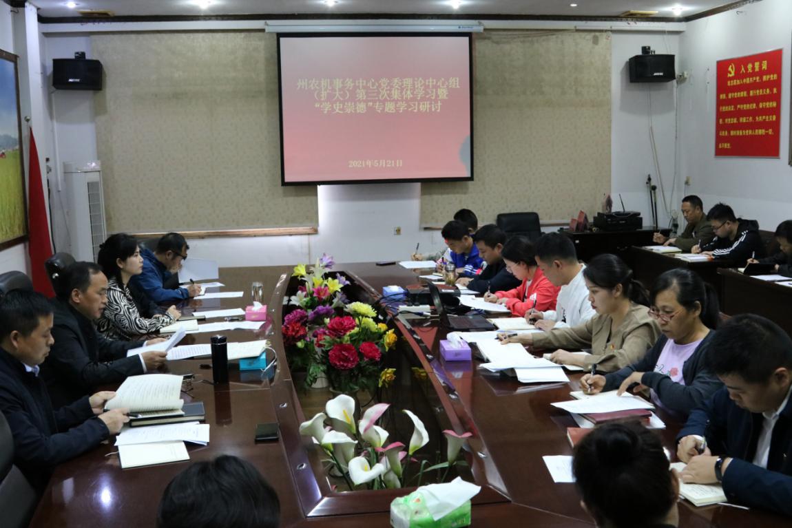 5 月21日下午,州农机事务中心召开党委理论学习中心组(扩大)第三次集体学习暨“学史崇德”专题学习研讨。党委书记吴翔主持会议,州农机事务中心全体干部职工参加会议。