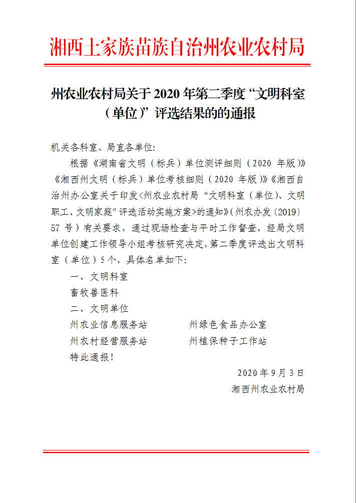 州365bet亚洲体育_365体育平台怎么不取缔_365沙巴体育注册农村局关于2020年第二季度“文明科室(单位)”评选结果的通报